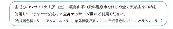 遠赤外線3~16ミクロンの育成光線を有するシラス(白土)を含むジェルを塗りますと霧島飲料温泉水との相乗効果により産熱が起こります。